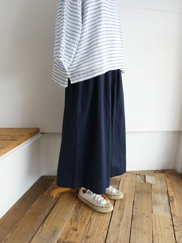 裾へふわっとボリュームを持たせつつ、すっきりしたバランスが絶妙。スカートのような雰囲気でコーディネートしていただけます。ウエストはシャーリング仕様でやさしくフィットします。