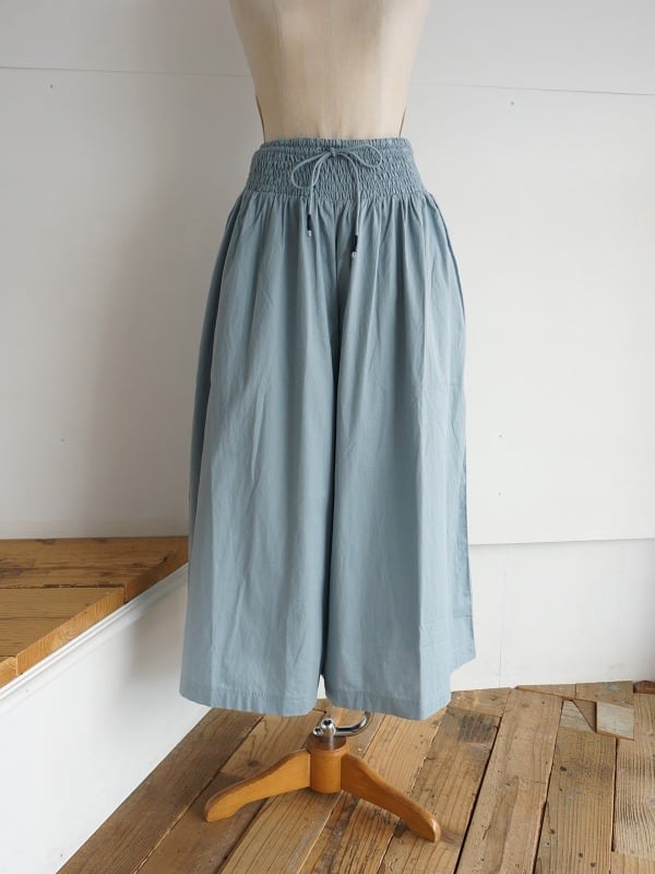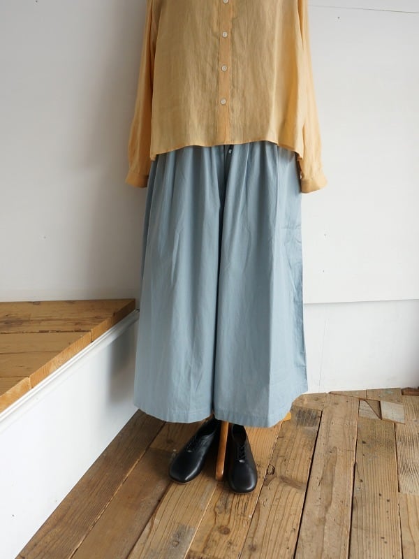 目面がきれいなハイカウントのコットンを使用したガウチョパンツ。しなやかなハリ感があり上品な印象の仕上がりです。