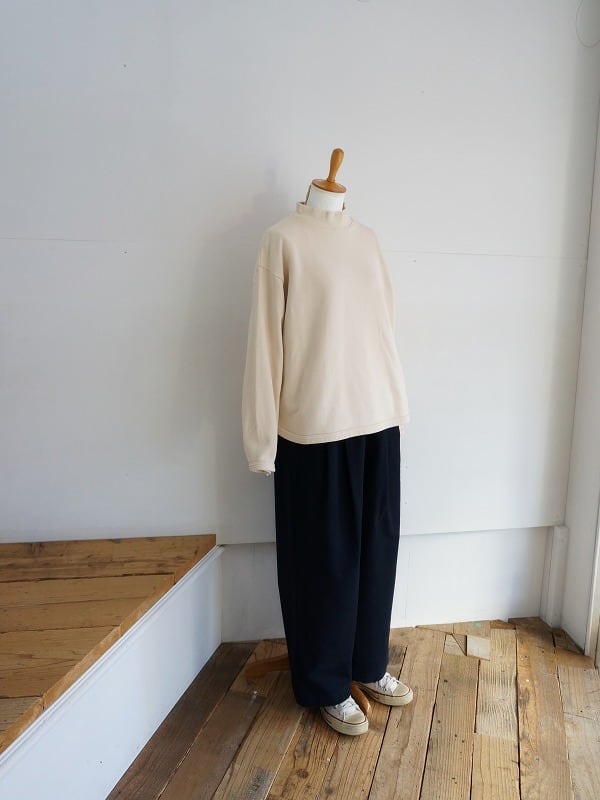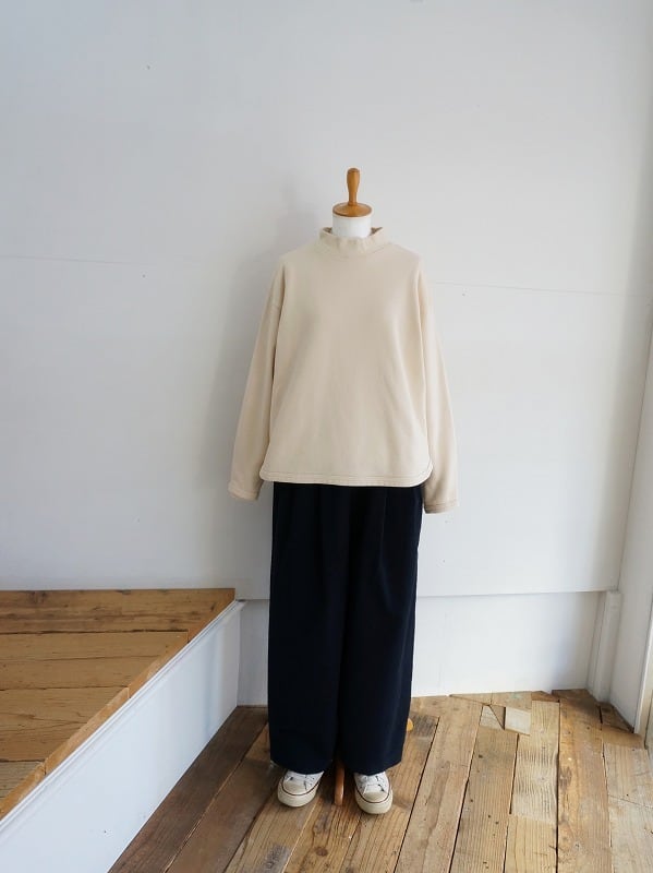程よい厚みのやわらかな裏毛素材を使ったハイネックのプルオーバーです。