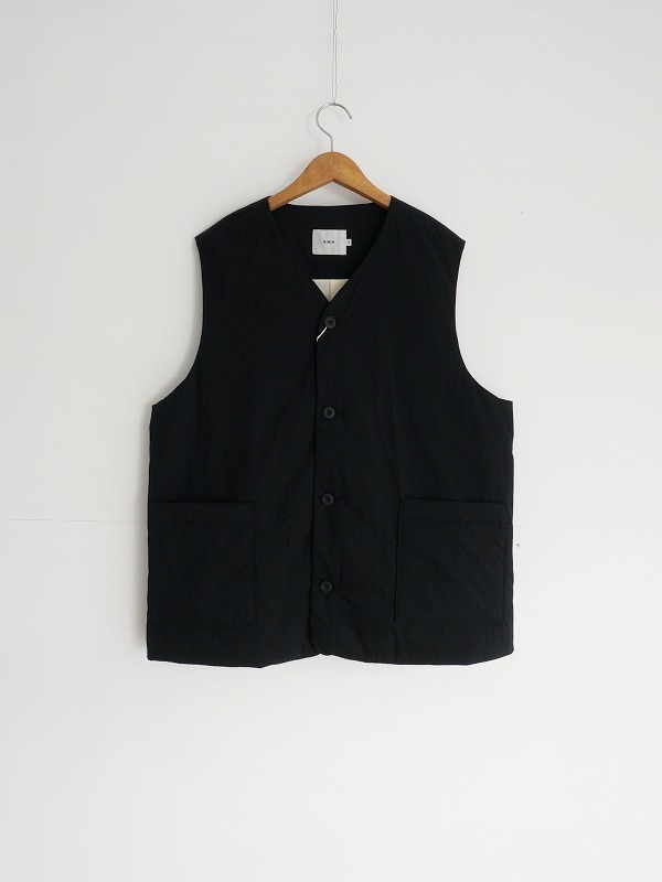 薄く中綿の入ったシンプルなベストです。適度に保温性があり、着ぶくれしないちょうどいい厚み。アウターとしても、ミドルレイヤーとしても活用できる一枚です。