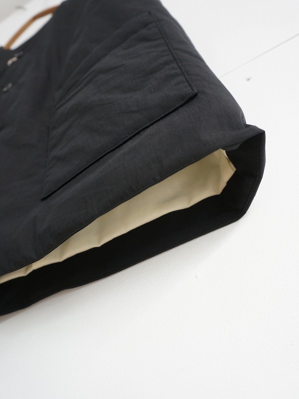 表地はコットンナイロンのタイプライター素材。バイオ加工を施し少しなじんだ風合いに仕上げています。薄く中綿が入り、保温性に優れています。