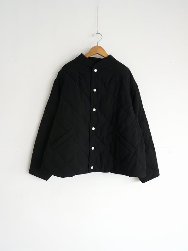 首に沿うように立ち上がった襟に、フロントはスナップボタン。Aラインのシルエットで、裾のコードでシルエットに変化が付けられます。腕繰りは広く、ラクチンな羽織り心地。前に振れたような袖の形も特徴的です。ショート丈なので小回りが利いてちょっとしたお出かけに最適なアウター。ダウンの量は程々に、着ぶくれせずに軽くあたたかく着ていただけます。