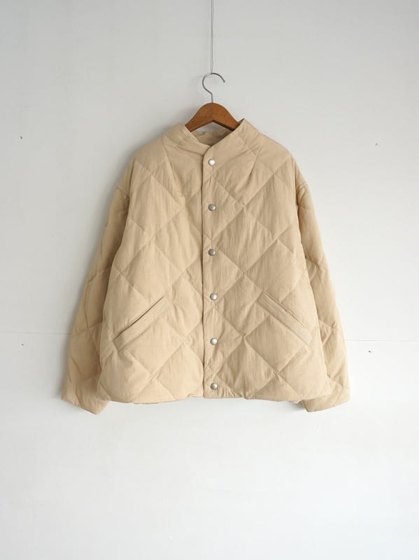 コットンライクなマットな風合いのレーヨンナイロンの生地を表地に使っています。しっとりやわらかな風合い。街着に適した分量のダウンが入り、軽く暖かく仕上がっています。