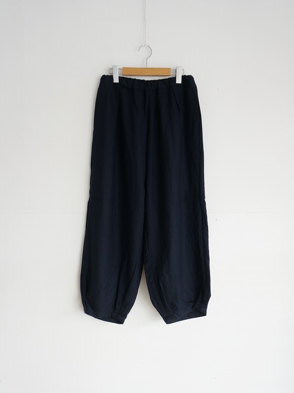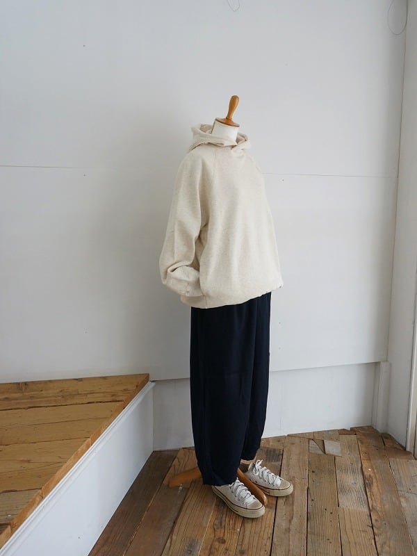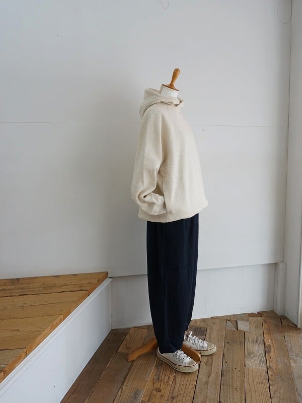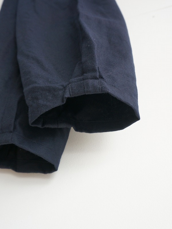裾にタックを施し、ややまるみを帯びたシルエット。程よいボリューム感と抜け感のある形に仕上がっています。ウールの素材感が雰囲気よく、ちょうどいいカジュアル具合で季節感のあるコーディネートが楽しめます。