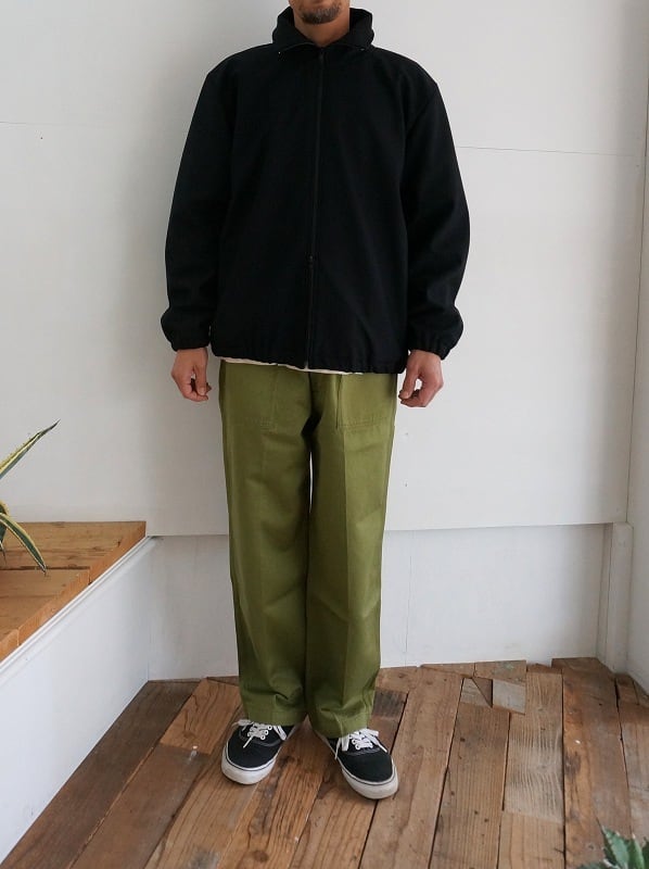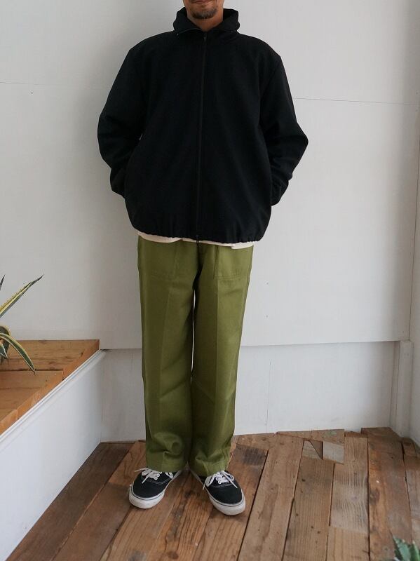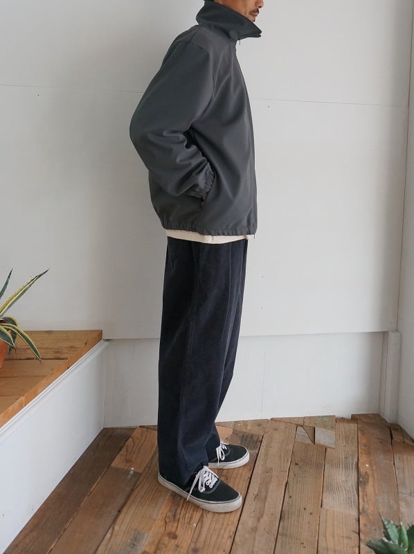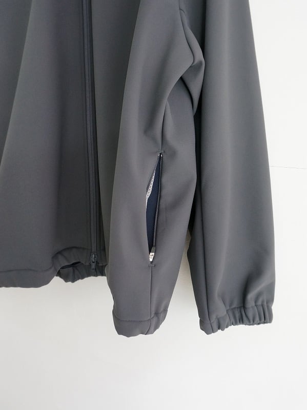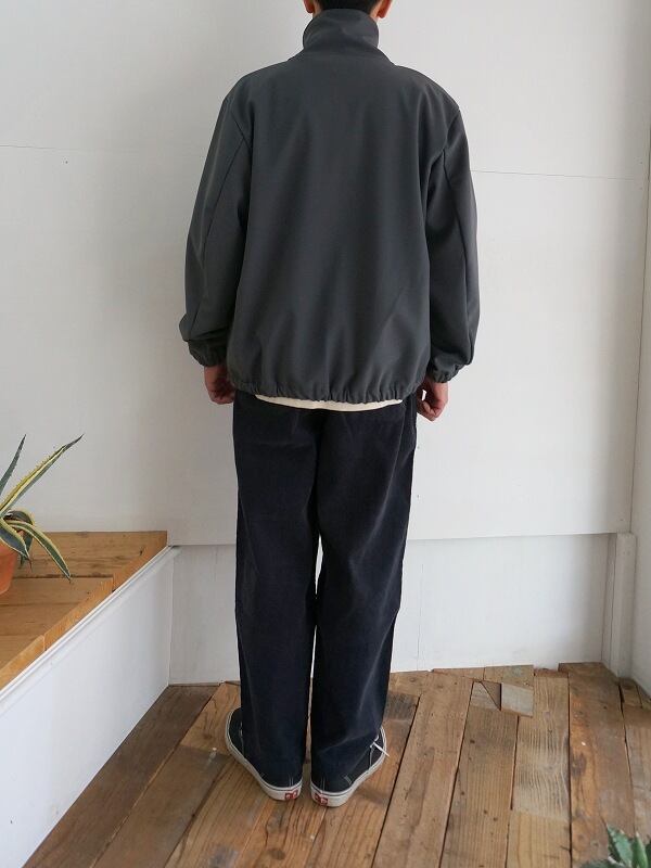 ファスナーの調整で襟元の変化が楽しめるジャケットです。裾にはゴムが入り、両脇にはファスナー付きのシームポケットが備えられています。